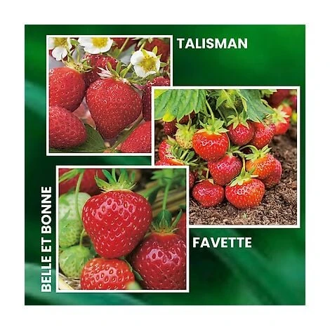 - 10 Talisman + 10 Favette + 10 Belle et Bonne. 3 variétés anciennes pour jardiniers gourmands. Talisman (réf. 66365) : beau fruit conique rouge vif, juteux et sucré, fraisiervigoureux, très bon rendement, demi-précoce. Favette (réf. 66367) : très précoce, variété vigoureuse,très parfumée et sucrée. Belle et Bonne (réf. 66368) : forte vigueur, gros fruit rond bien parfumé