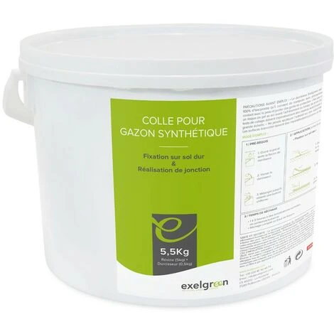 Pour fixer votre gazon synthétique sur sol dur ou réaliser des raccords avec la bande de jonction vierge, la résine polyuréthane bi-composante vous assurera une fixation définitive et un excellent maintient. Ce pot de colle de 5,5kg vous permettra d’encoller environ 20 mètres linéaires sur 10cm de large, selon la spatule crantée utilisée. Pour fixer votre gazon en sa périphérie, ou pour réaliser des jonctions, la résine bi-composante Exelgreen est une valeur sûre pour une fixation optimale de votre gazon synthétique sur tous types de superficie.