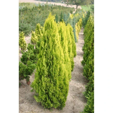 Cette variété de thuya se caractérise par son feuillage doré persistant et son port étroit. En effet à taille adulte, ce conifère disposera d’un port assez colonnaire, environ 1,20 mètre de large. Son feuillage est relativement dense et se compose de rameaux plats recouverts de feuilles dorées persistantes et légèrement parfumées.